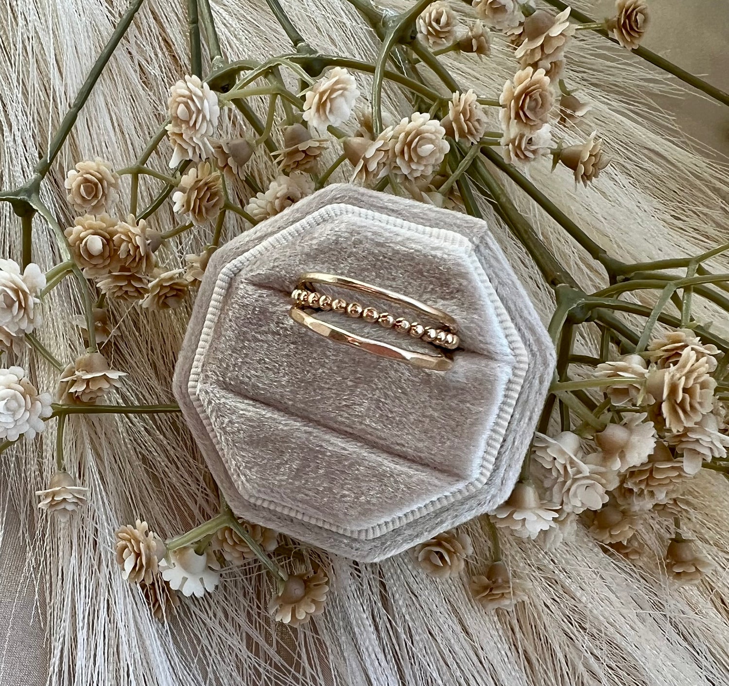 Join us for a beginners workshop & learn how to make sterling silver or gold-filled stacker rings! You’ll make three rings; one beaded, one hammered and one classic stacker ring!